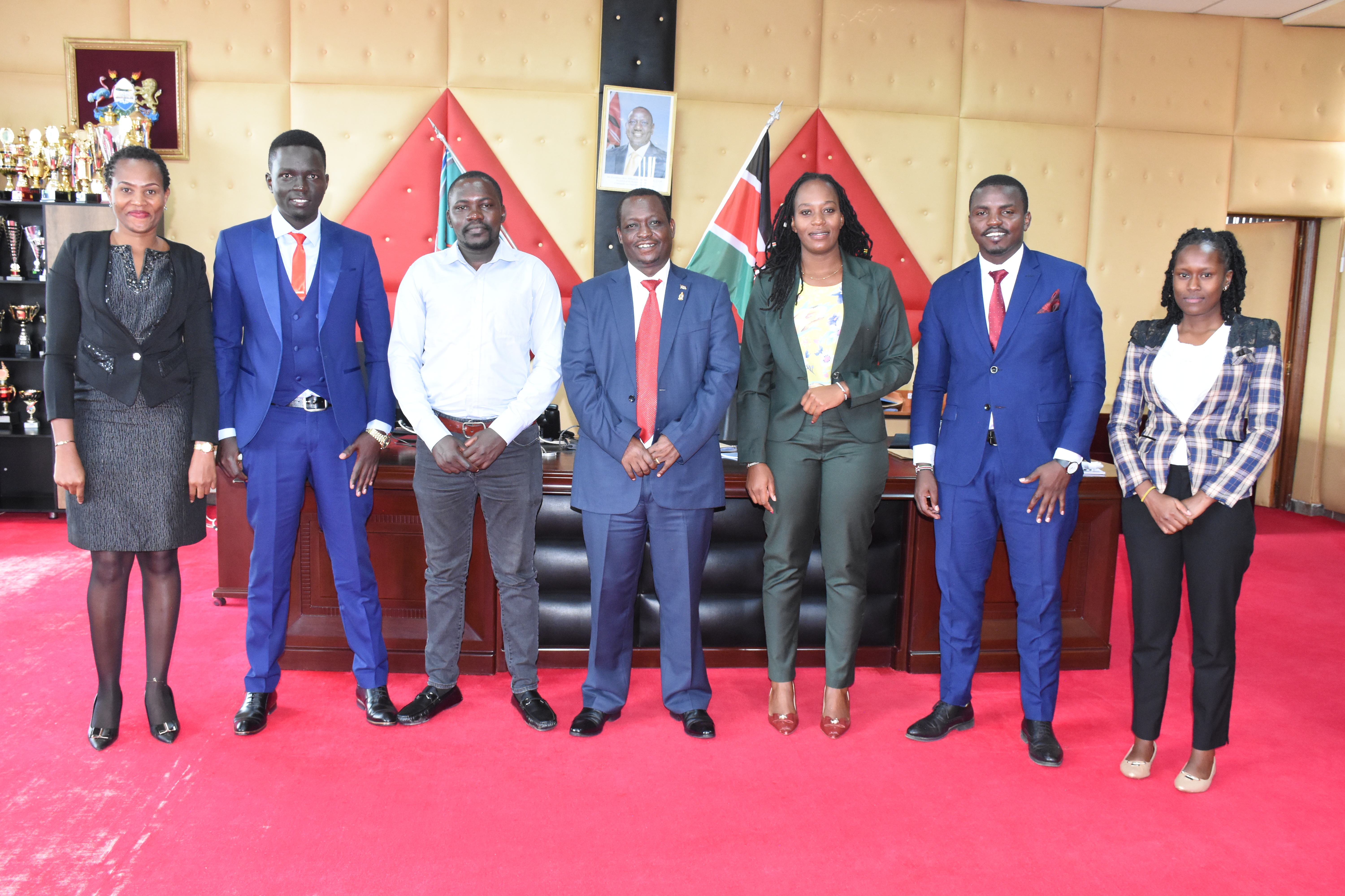 From left Dr. Immaculate Namulia (Chief Public Relations Officer), Anthony Kimani (Treasurer), Linus Ndung’u (Chairperson), VC Prof. henry Mutembei, Esther Robi (Organizing Secretary), Livan Njeru (Secretary General)and Beatrice Chebet.